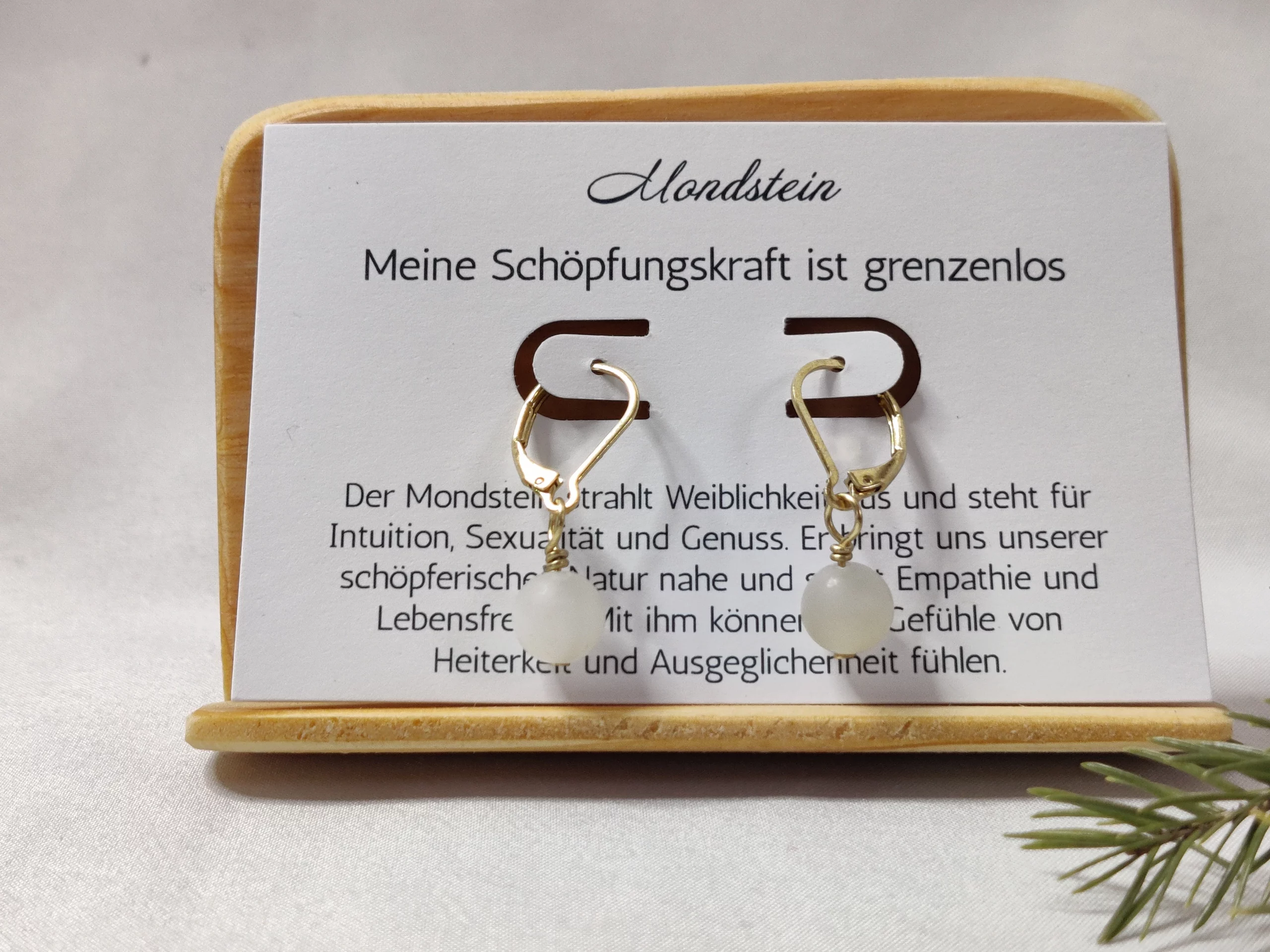 Feine Ohrringe mit Edelsteinperle – mit Affirmation und Wirkung des Steins.