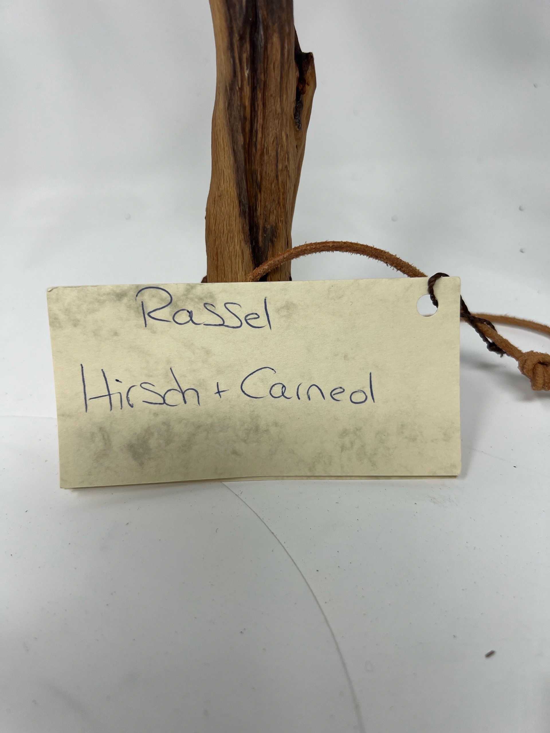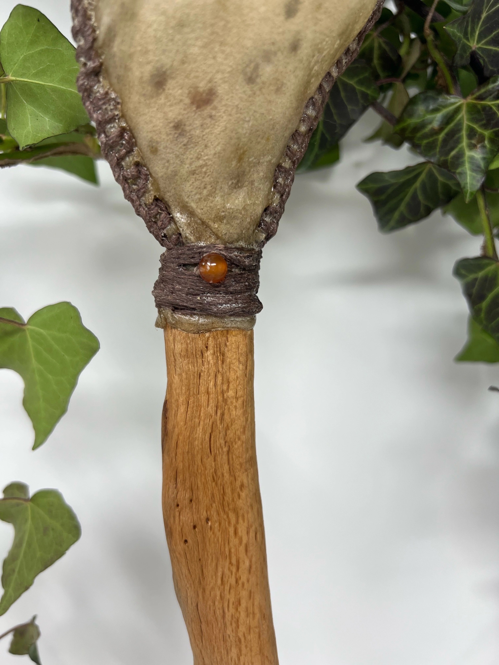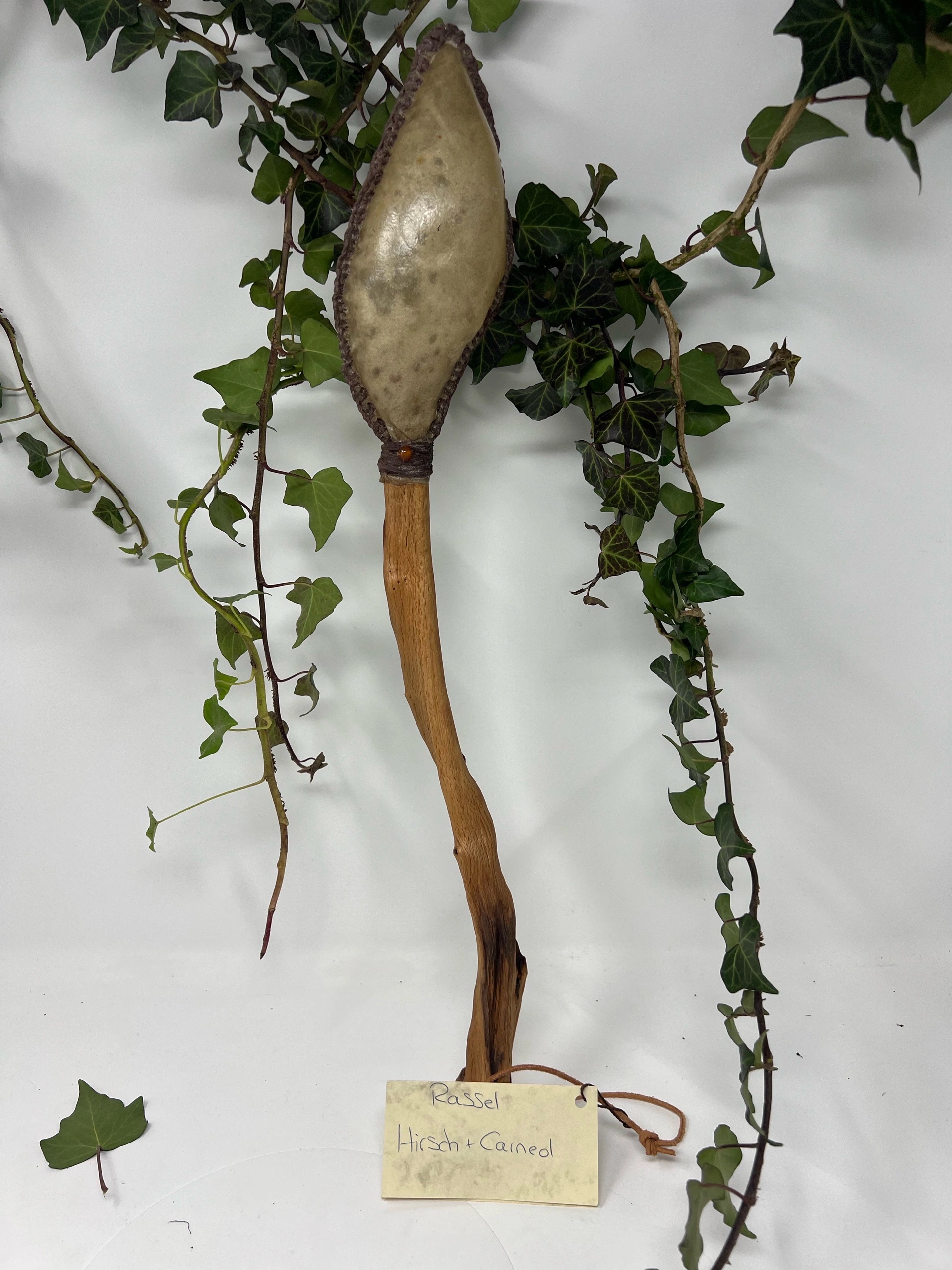 Rassel aus Hirschhaut und Buchengriff mit Karneol