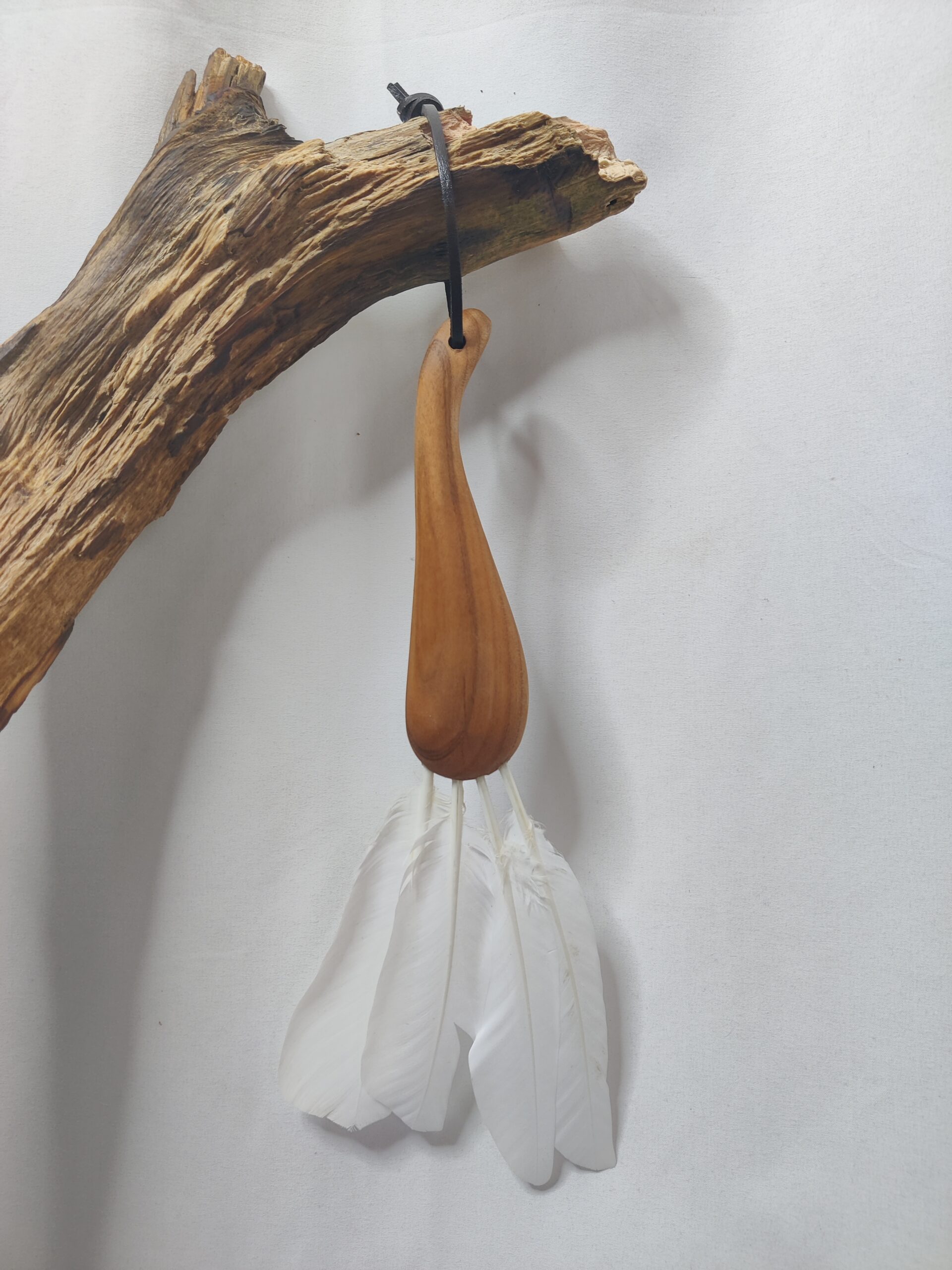 Material: Kirschholz | Federn: Taubenfedern | Maße: 26 cm